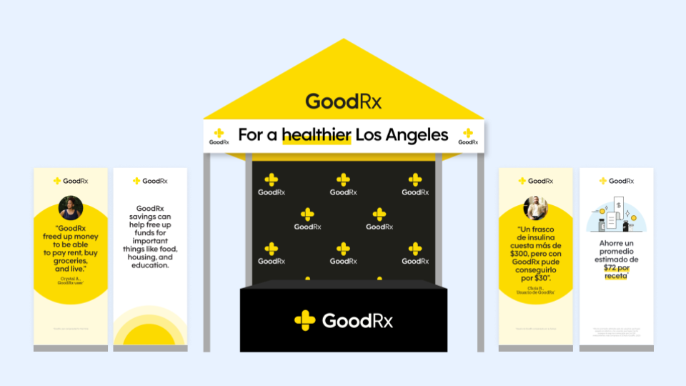 GoodRx Helps, the social impact arm of GoodRx, regularly engages the local community through ad-hoc events such as health fairs and pop-up clinics. We created a modular event kit comprised of printed booth materials, retractable banners, and interactive concepts for engagement at the booth.
