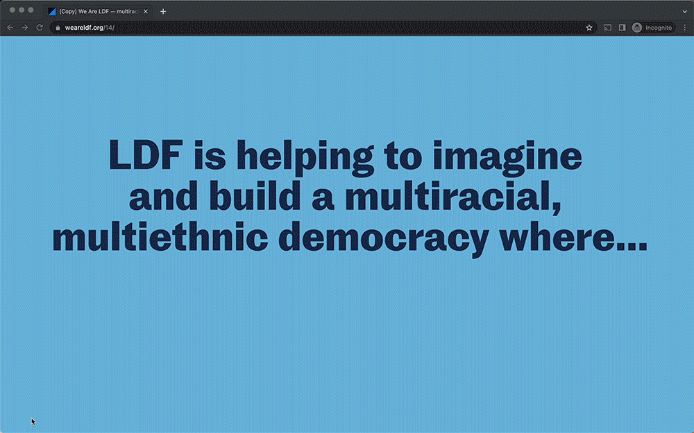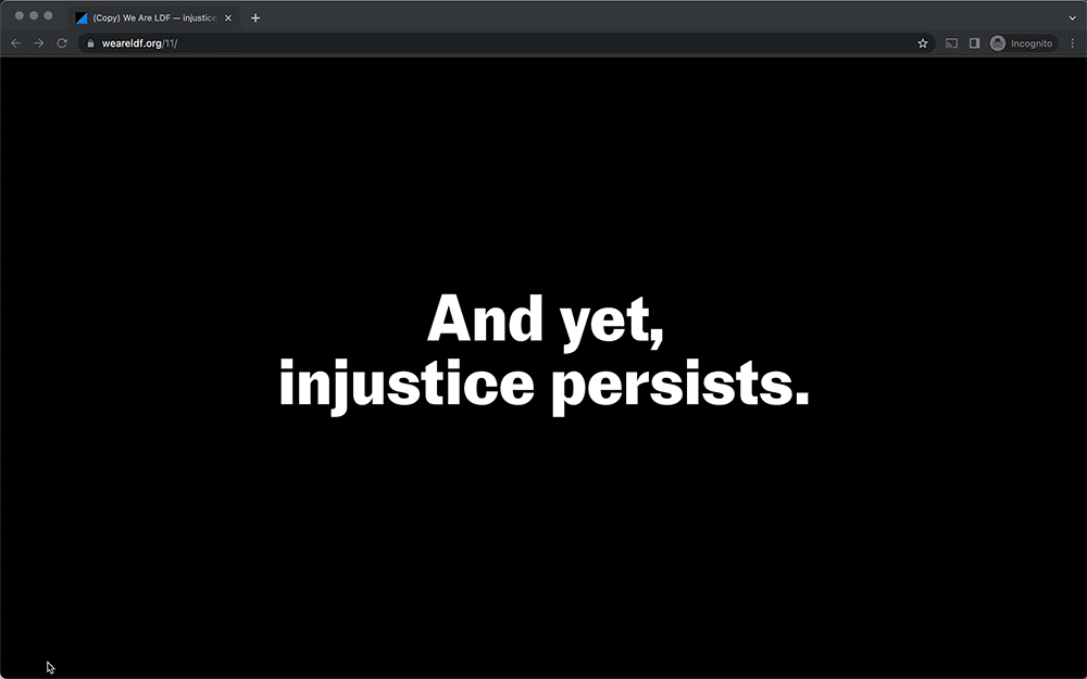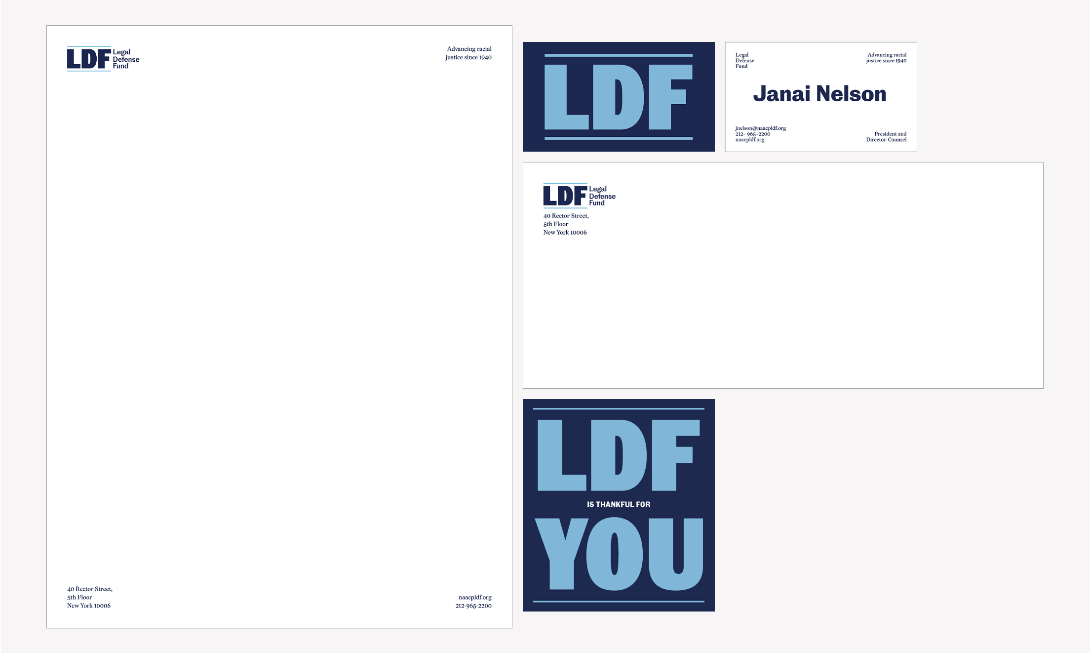 As part a full-scale transformation of the Legal Defense Fund’s vision, culture, and brand, I helped to develop the visual rebrand and brand strategy in collaboration with Brooklyn-based studio MorcosKey—crafting a new visual identity and a unifying narrative to bring the refreshed brand to life across the organization.